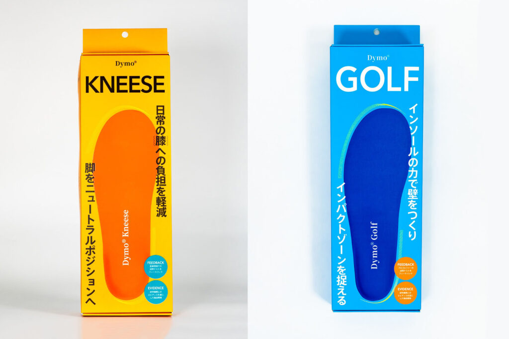 日常の膝への負担軽減を目的とした【Dymo® Kneese】、ゴルフのプレーをサポートする【Dymo® Golf】の2種類を展開しています。